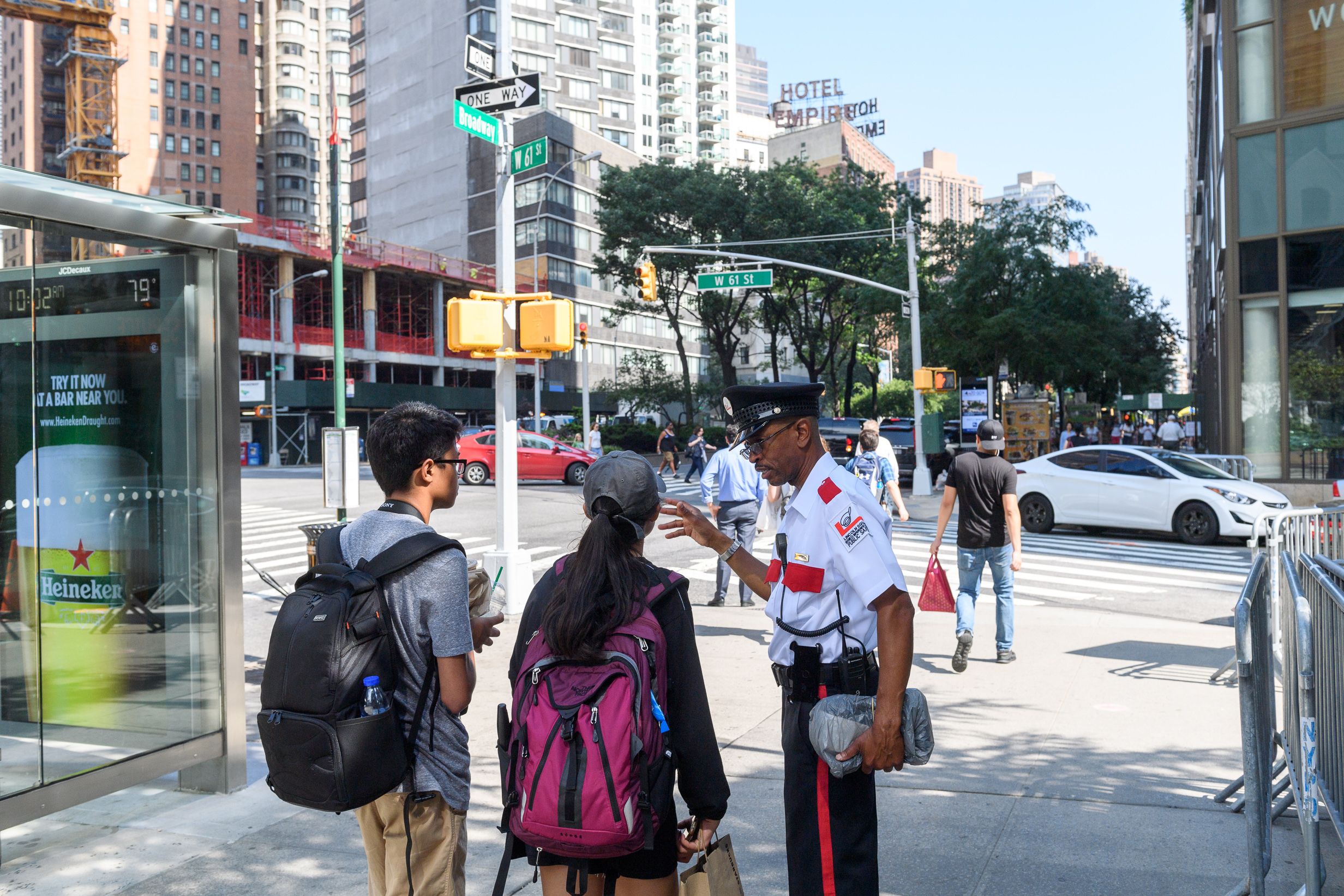 Who found my lost cell phone? Who reported that troublesome pothole? Maybe you’ve noticed the uniformed workers outside, patrolling the neighborhood in their white shirts, dark blue caps, and the Lincoln Square BID logo. For some of our visitors, residents, and workers who are unaware, the Lincoln Square BID employs 10 Public Safety Officers, through a contract with Summit Security, who act as the eyes and ears of the neighborhood and NYPD, reporting conditions, offering directions to the public, and adding an overall sense of safety to the area.