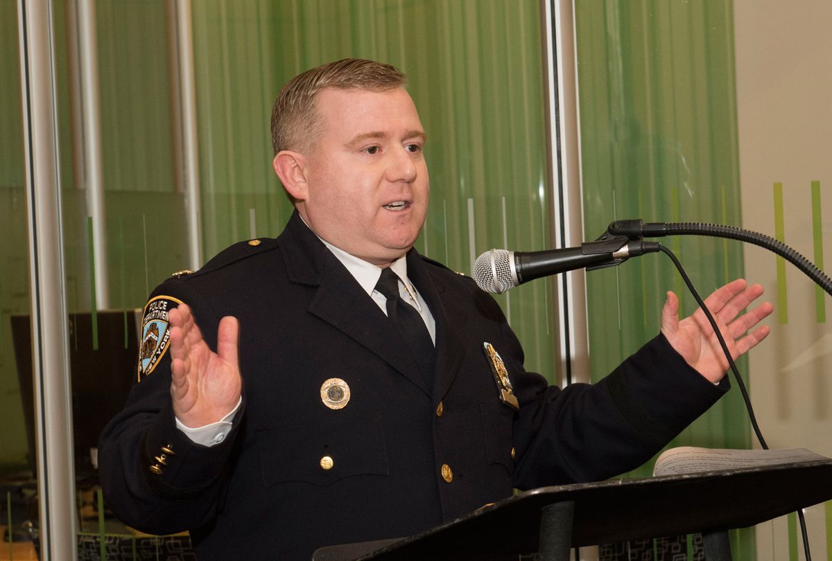 On Wednesday morning March 6, The Lincoln Square BID partnered with TD Bank for a Community Breakfast event featuring Deputy Inspector Timothy Malin, the Commanding Officer of the 20th Precinct. DI Malin, who has spent almost 20 years in the NYPD and came to the 20th Precinct almost a year ago, spoke to a standing room only crowd of local residents, business owners, nonprofit representatives, local leaders and security professionals about the Neighborhood Policing program, which has been launched throughout the City. The program is designed to engage the community and free up officers to focus on and solve local problems. As part of this program, the 20th Precinct has been divided into three sectors with Sector A serving the Lincoln Square BID and each sector having dedicated Neighborhood Coordination Officers (NCOs). After his remarks, Malin took questions from the audience and urged everyone who had not already met our NCOs to reach out to them. Our NCOs are PO Bridget Fanning and PO Roberto Vasquez and they reachable via email at Roberto.Vasquez@nypd.org and Bridget.Fanning@nypd.org.