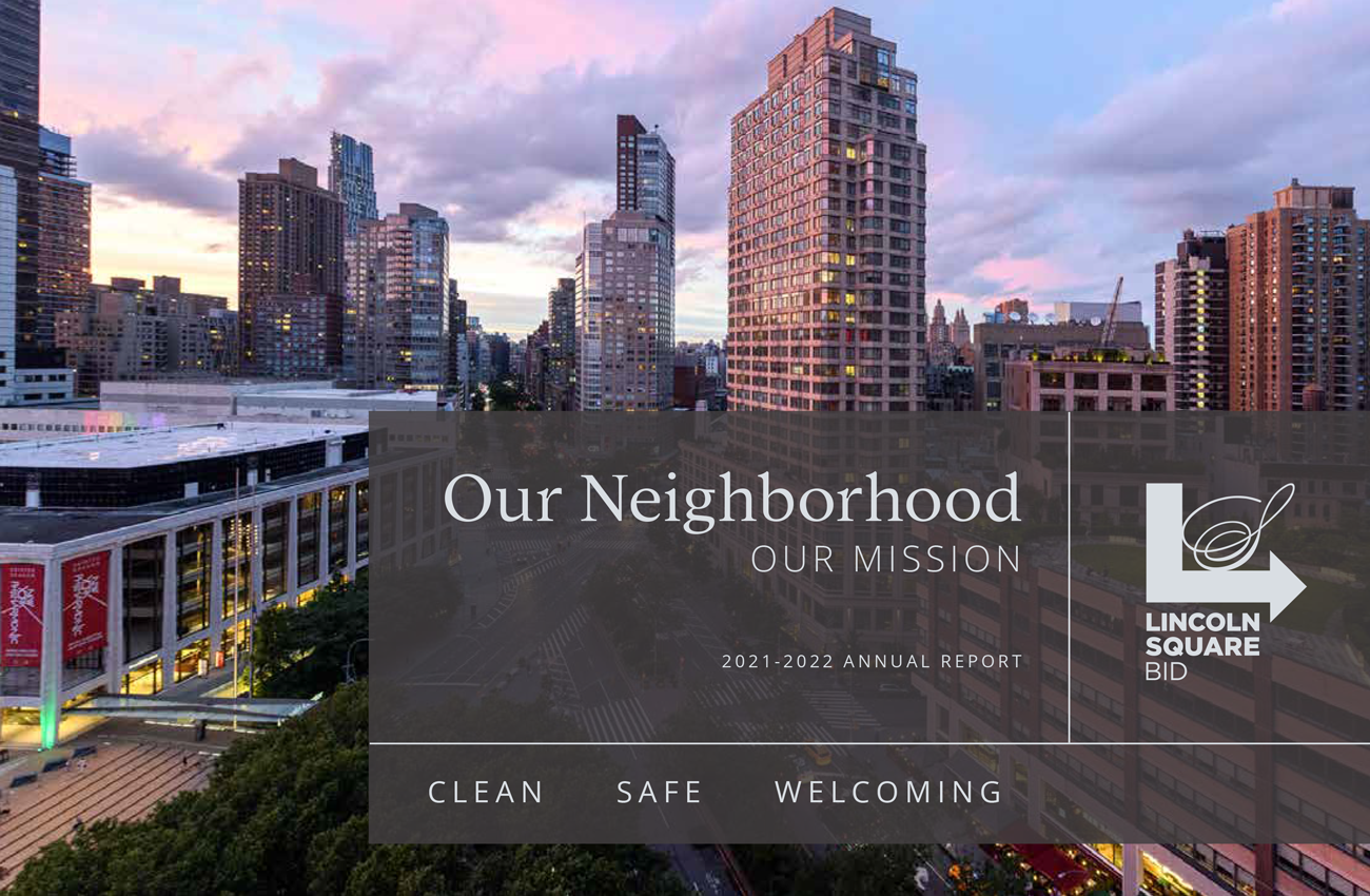 On Wednesday, May 18 the Lincoln Square BID held its 25th Annual Meeting via Zoom. This was our third (and hopefully last!) virtual Annual Meeting and we were so pleased to see so many Board Members, businesses and not-for-profits, residents, and other partners and friends. Thank you to those who attended! For those who were unable to join us, we were fortunate to hear from Philip Banks – the Deputy Mayor for Public Safety – who spoke about Mayor Adams’ stance on public safety and the importance of reducing crime, gun violence, and addressing the mental health crisis, which are all key to New York City’s recovery and future prosperity. Manhattan Borough President Mark Levine and City Councilmember Gale Brewer joined us to say a few words, too. At the meeting, we also elected Directors and Alternates to our Board, and presented our FY 2023 budget and financial statements as well as our FY2022 Annual Report, detailing a year in review of our services. Click here to download a PDF of the FY2022 Annual Report. We welcome our new Directors and Alternates to our Board and thank all stakeholders for their dedication and support over this past year. Click here to view our current list of Board and Directors.
