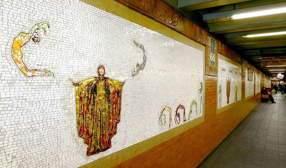 First known as “Lincoln Square,” then later as “Empire Park North,” the small park was renamed in honor of the renowned tenor and Brooklyn Native Richard Tucker in 1980. Tucker, who enjoyed a thirty-year career with the Metropolitan opera, specialized in Italian operatic work. A bronze portrait bust of Tucker, sculpted by Milton Hebald and unveiled in 1979, sits atop a granite plinth listing the titles of the 31 operas in which Tucker performed. Today’s amenities at Richard Tucker Park, which the BID provides and maintains with support from the Tucker Family and Foundation, include moveable tables, chairs and umbrellas, planters, a permanent way-finding kiosk, one of the BID’s mobile information carousels, and a year-round bi-weekly Greenmarket.